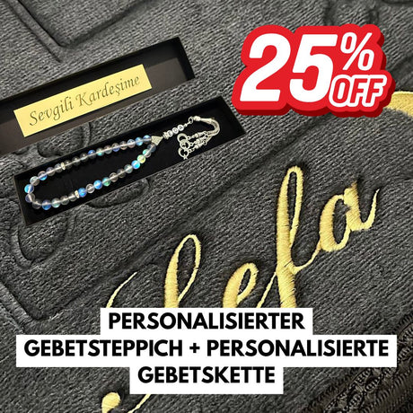 Wir sind stolz darauf, nicht nur wunderschöne personalisierte Gebetsteppiche anzubieten, sondern auch eine breite Palette anderer Geschenkartikel. Ob für Geburtstage, muslimische Feiertage, Babys Geburten oder andere besondere Momente im Leben – wir haben das perfekte islamische Geschenk für jeden Anlass. Unsere muslimischen Geschenke sind sorgfältig ausgewählt und gestaltet, um Spiritualität und Wertschätzung zu vermitteln.